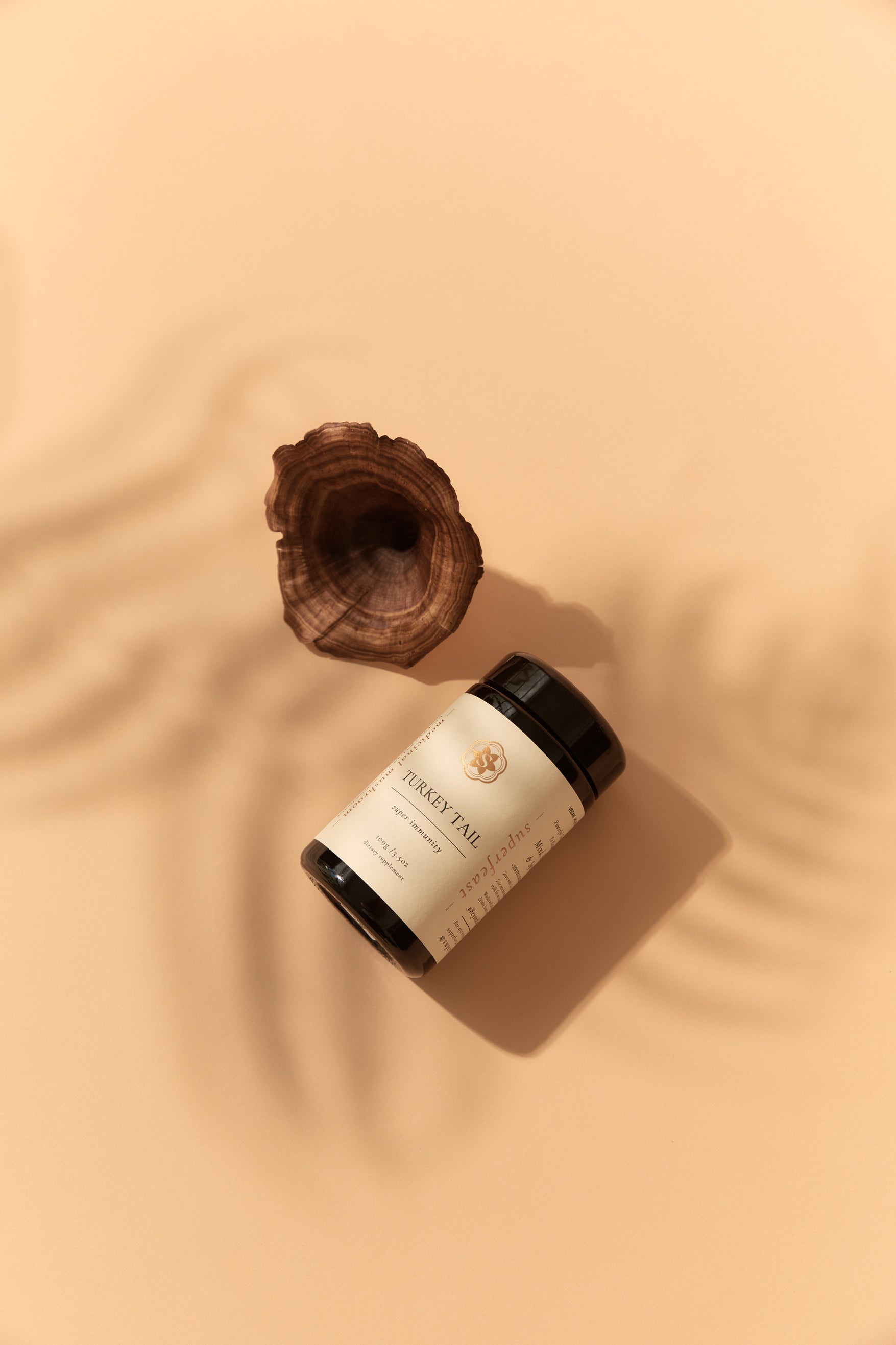 Trametes mushroom is one of the most ubiquitous of the fungi kingdom, growing in many regions of the world with a well-documented historical usage spanned across many ancient cultures. It is known as the “turkey tail” mushroom in the West, as its fan shape bears a strong resemblance to the tail of a standing turkey.